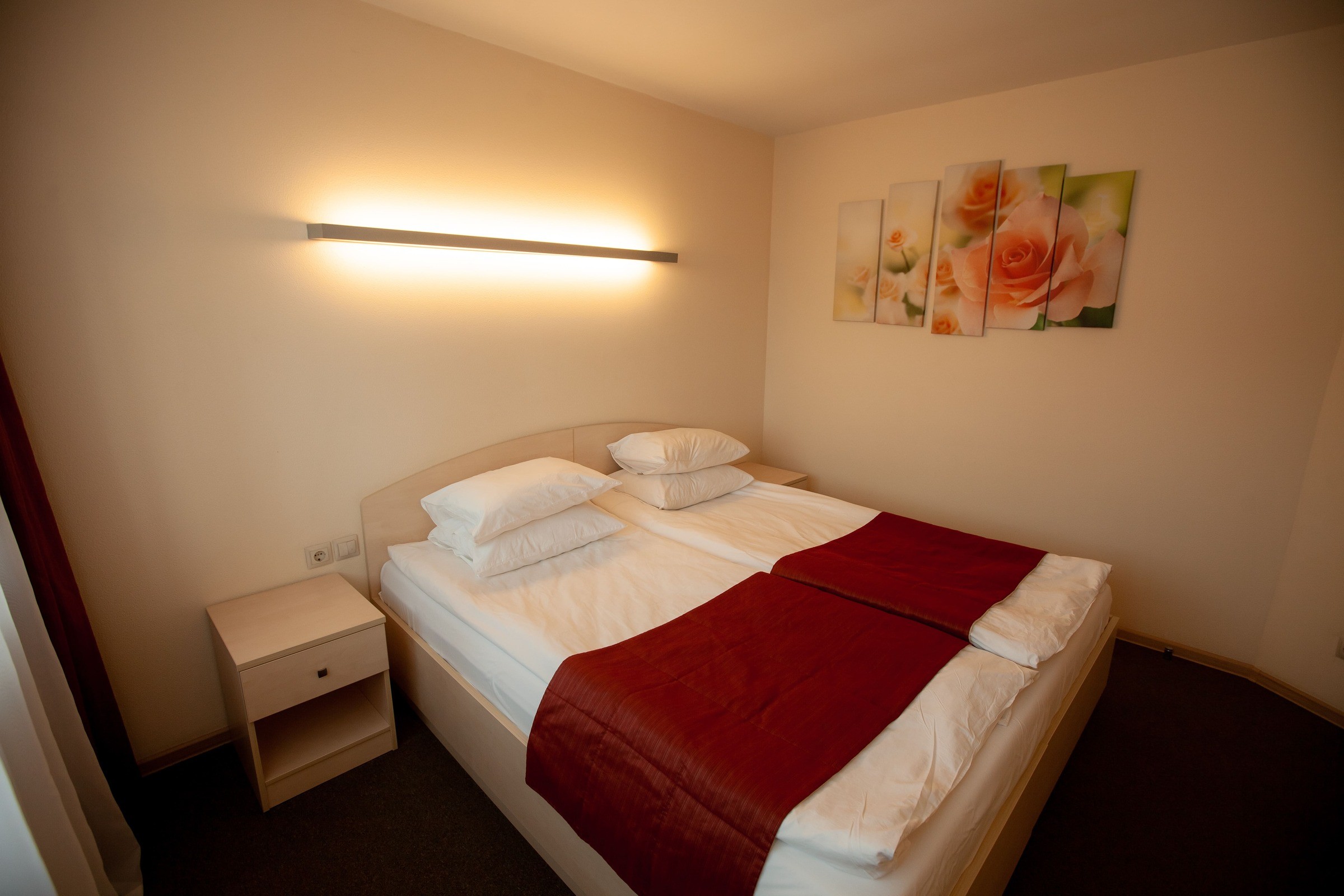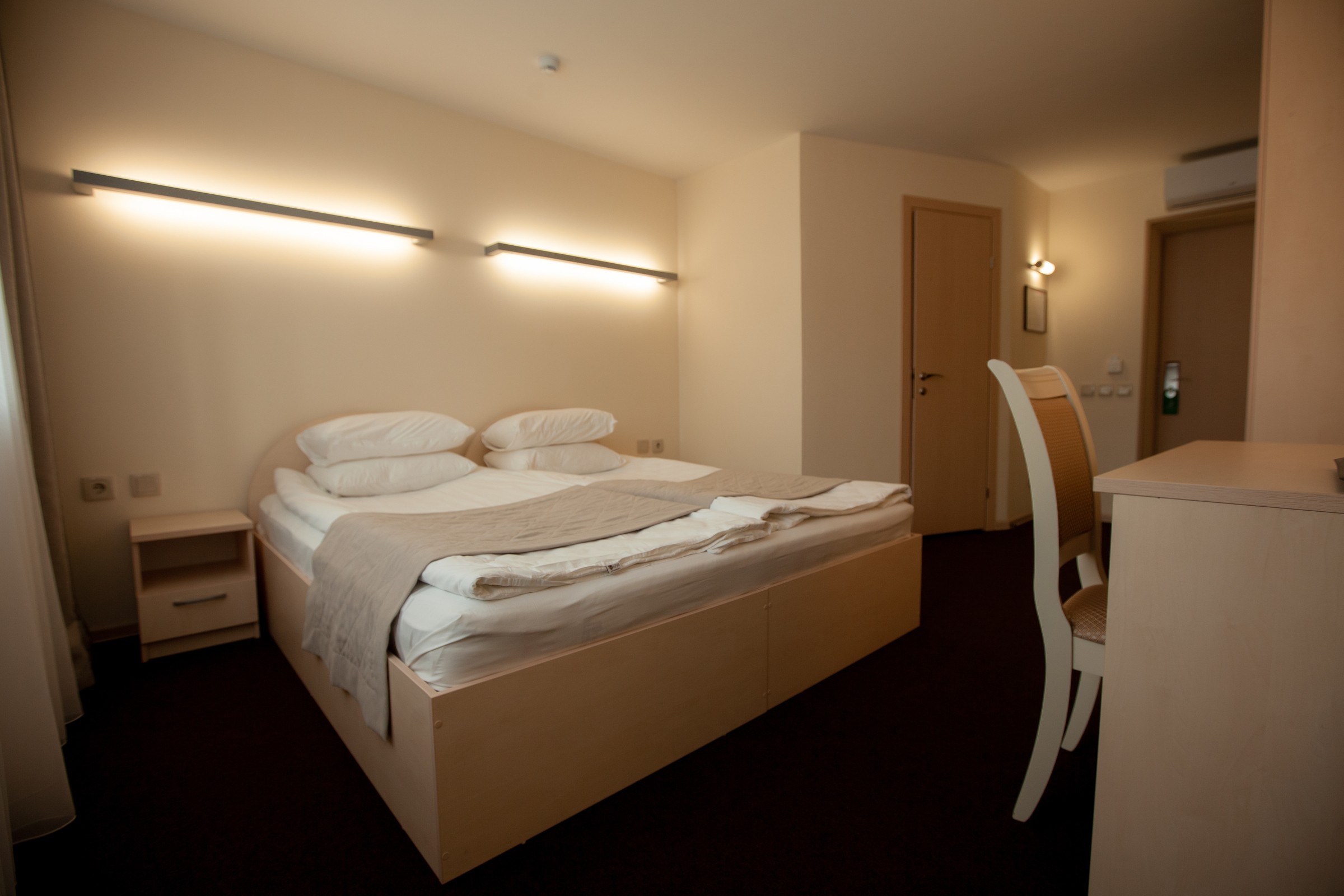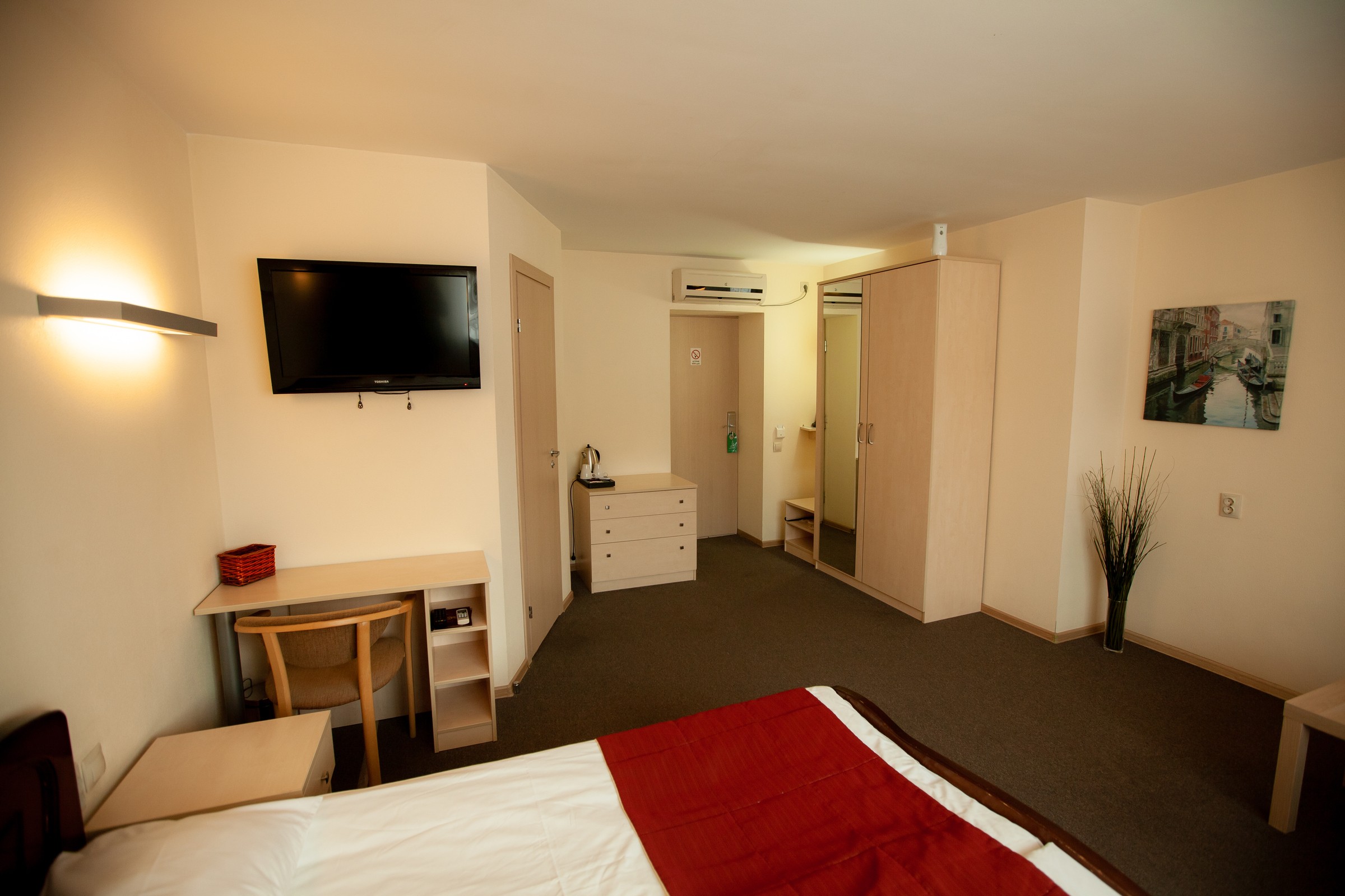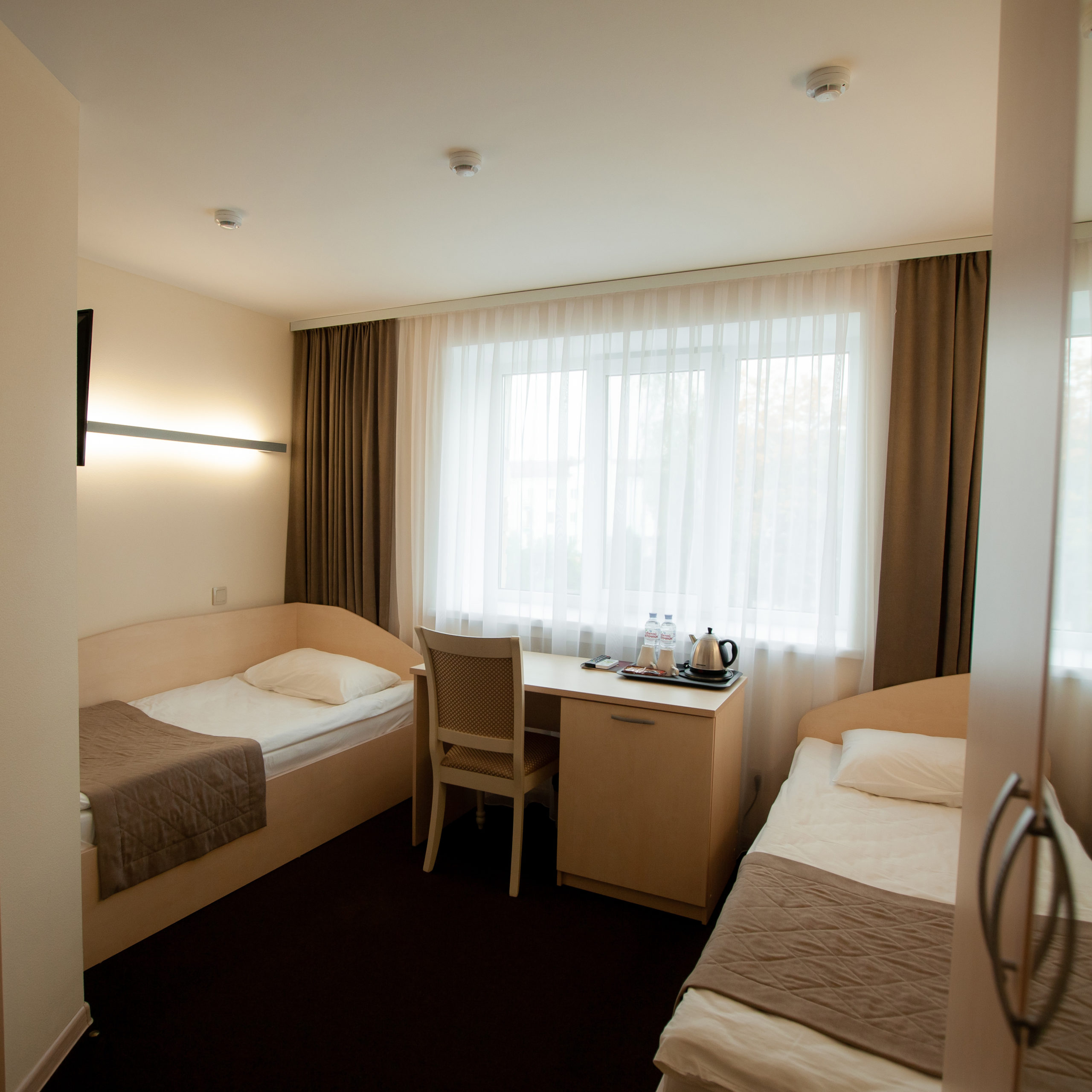 Уютный одноместный номер располагает всем необходимым для комфортного отдыха: полутораспальной кроватью 140×200, ковровым покрытием, современной мебелью, шкафом, телевизором, холодильником, набором для чая и кофе, а также бесплатным Wi‑Fi.
