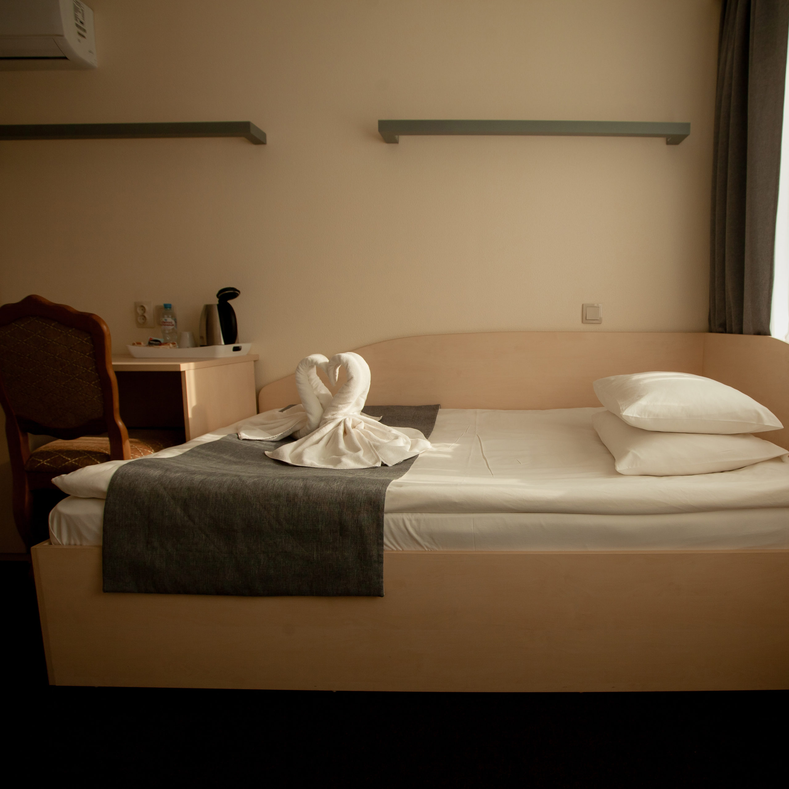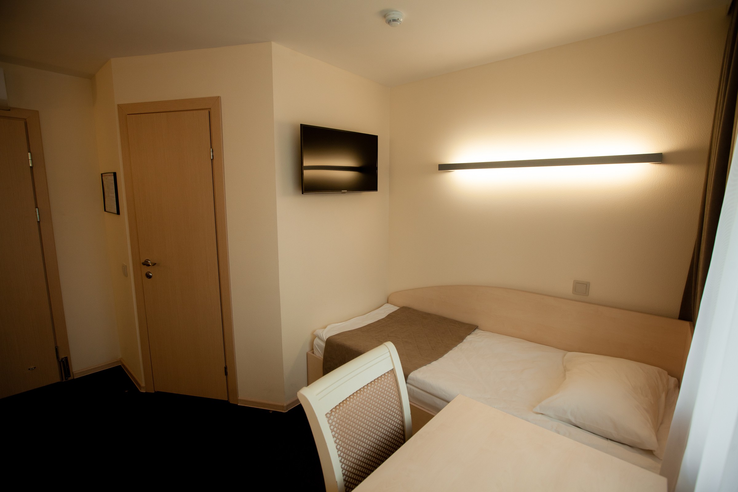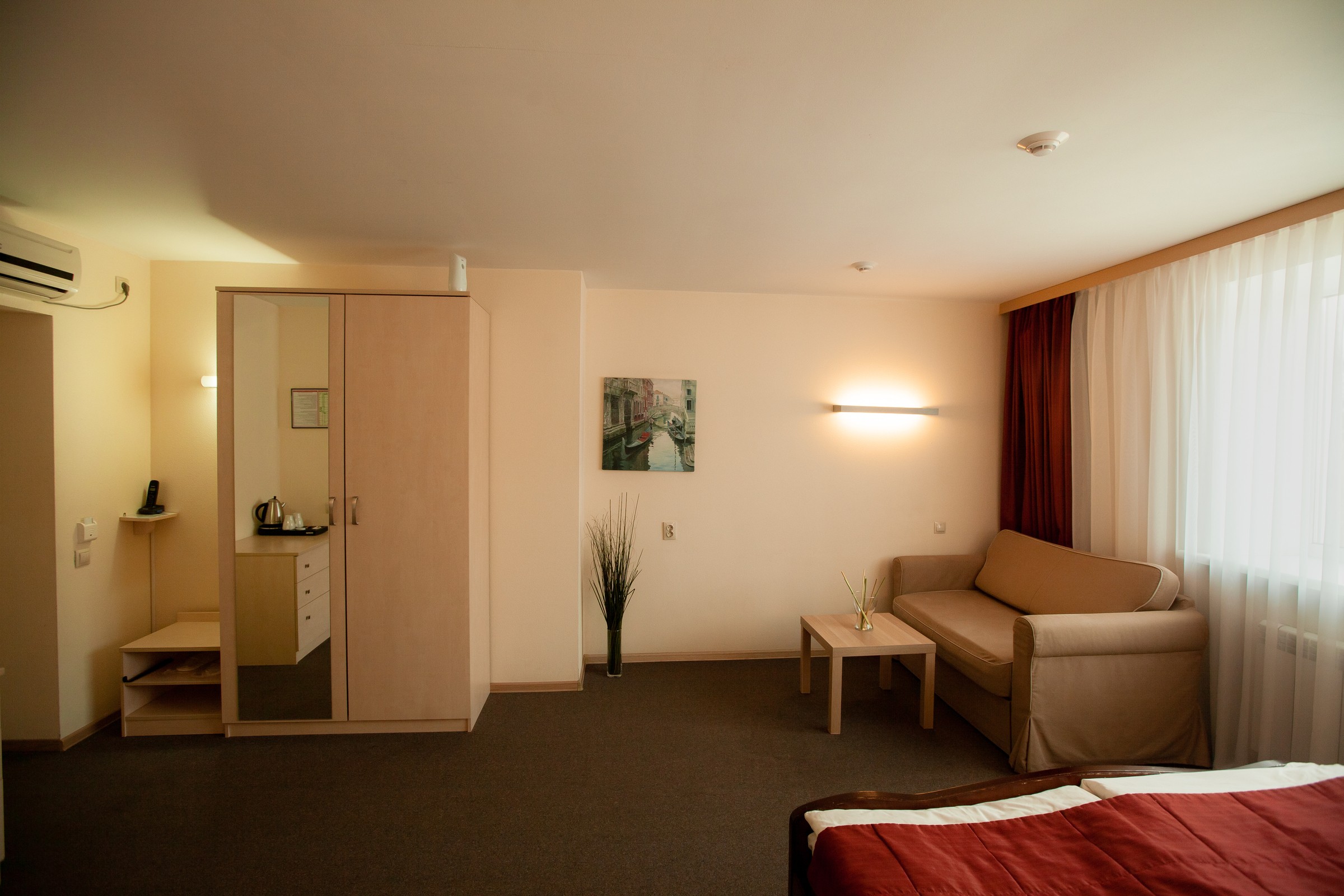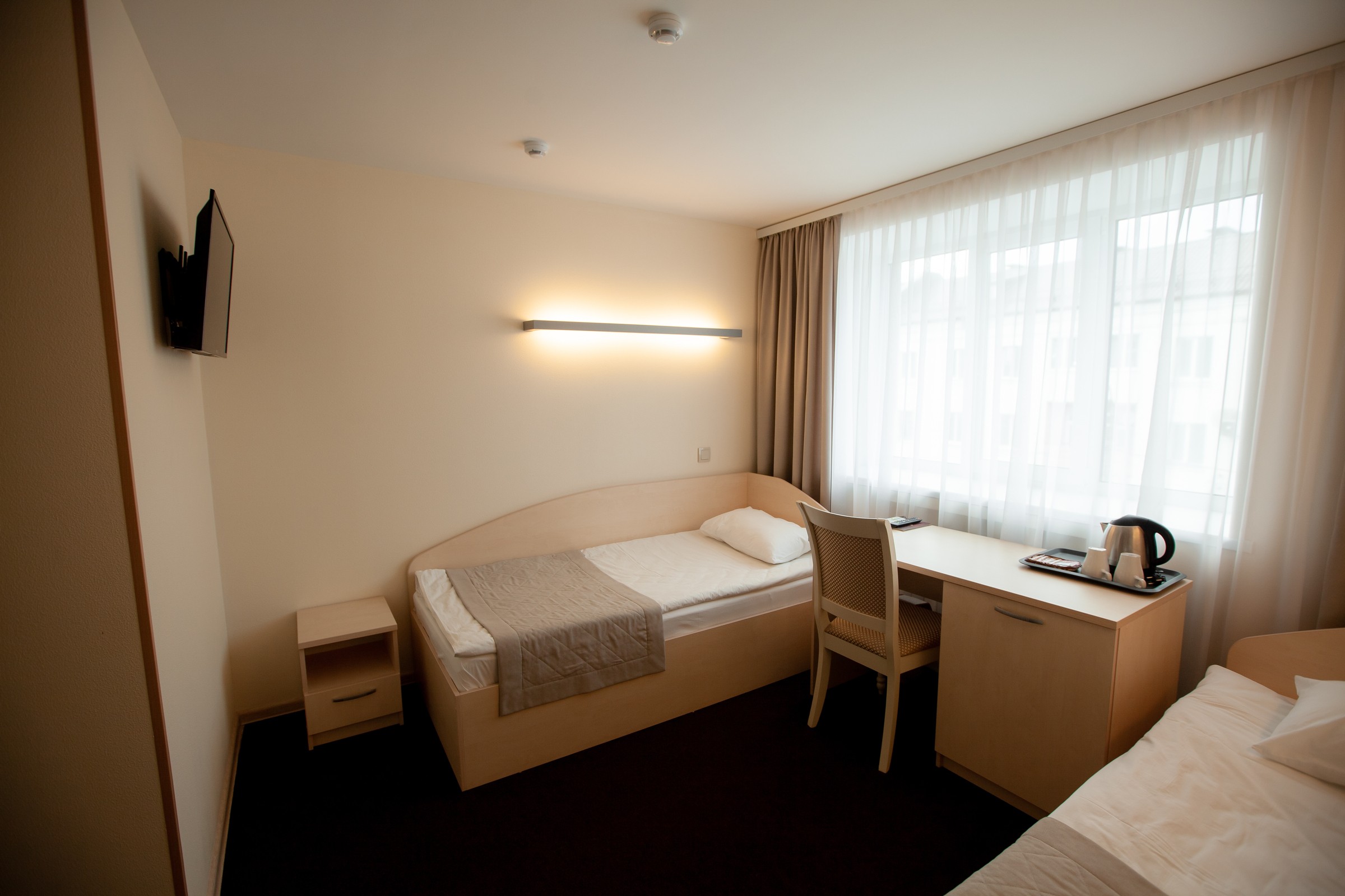 Уютный одноместный номер располагает всем необходимым для комфортного отдыха: полутораспальной кроватью 140×200, ковровым покрытием, современной мебелью, шкафом, телевизором, холодильником, набором для чая и кофе, а также бесплатным Wi‑Fi.